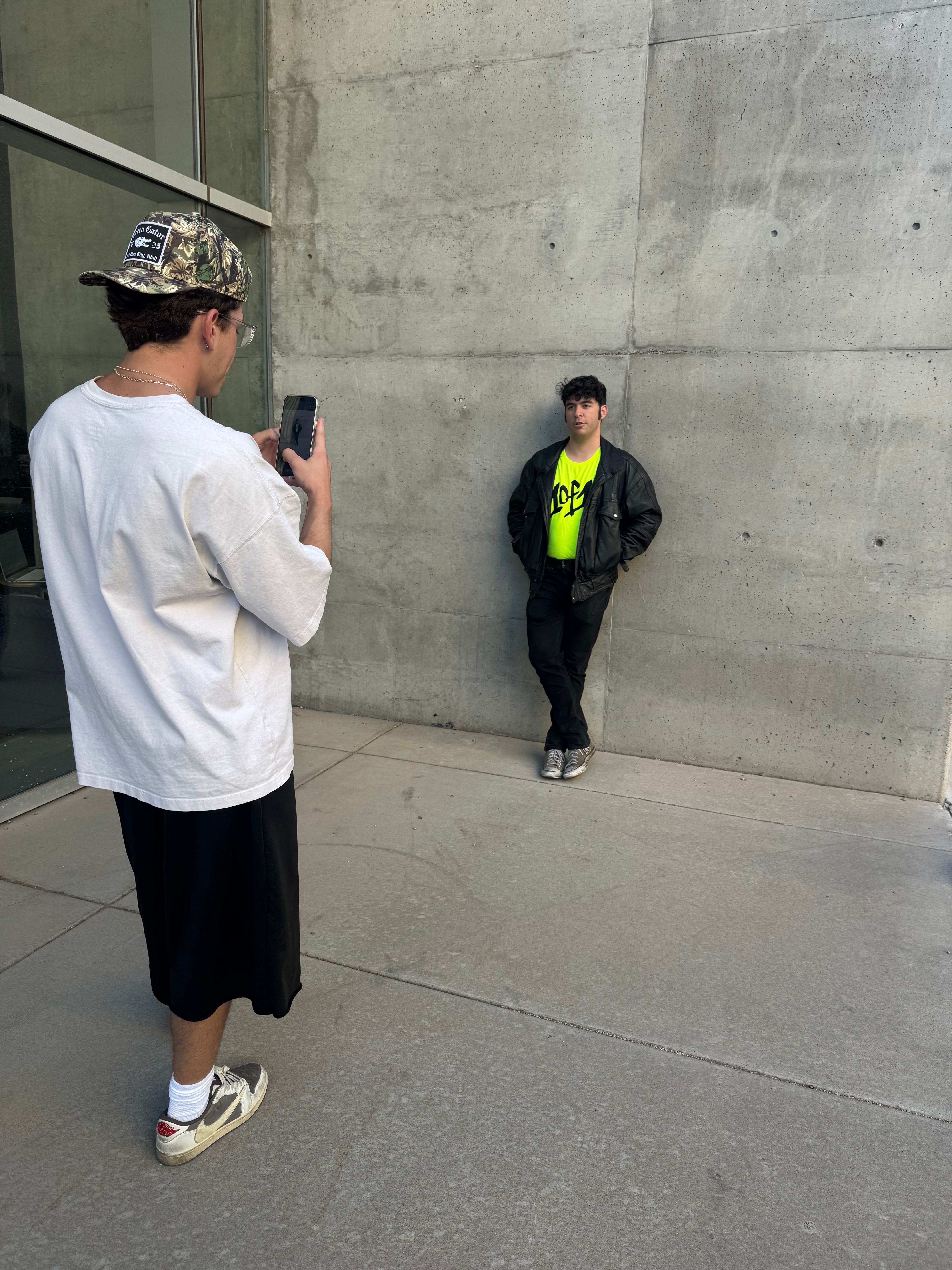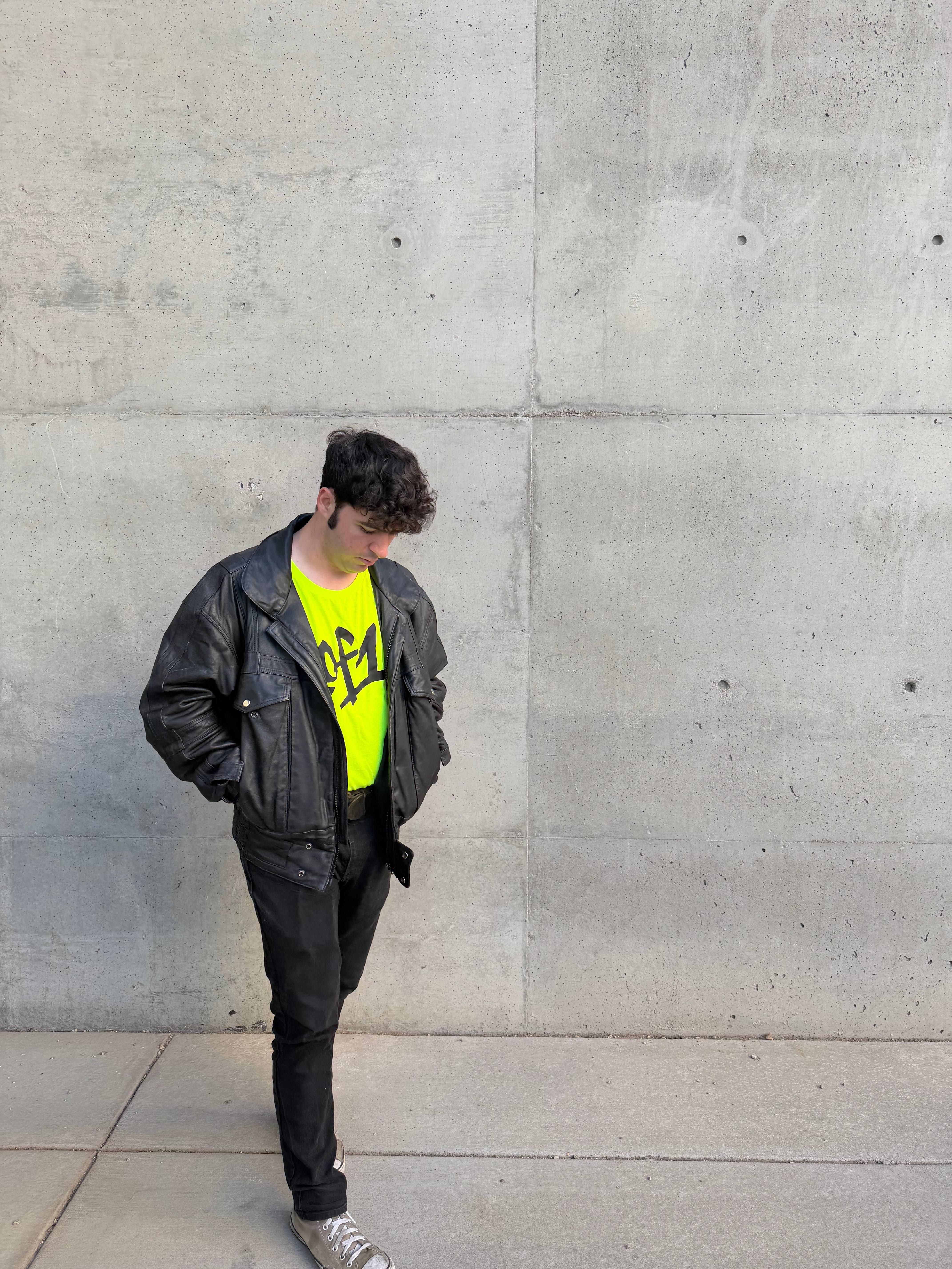 neon yellow oversized t-shirt with large black graffiti-style "1OF1." brush script logo
